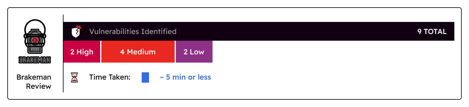 - Brakeman does not evaluate risk, so all ratings were based on similar findings from other tooling